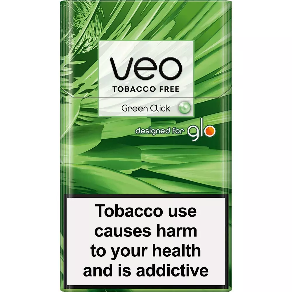 Veo Green Click has a slightly fresh mint aroma with a capsule that reveals a fresh, sweet, creamy peppermint taste. For use only with Glo Hyper line of devices. Tobacco free.