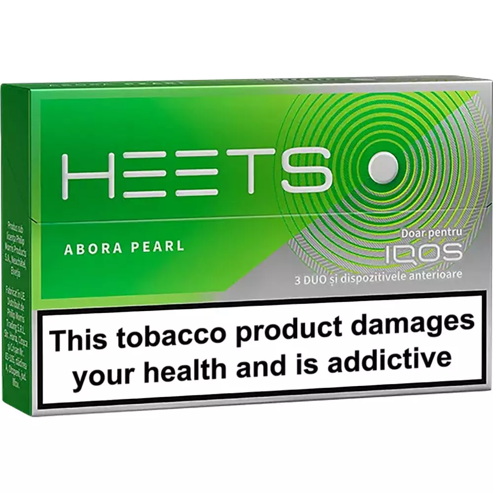 Heets Abora Pearl has a strong, roasted tobacco flavor with malty notes. Pressing a button reveals a refreshing menthol with some green garden fruits aroma. For use with IQOS Originals devices.